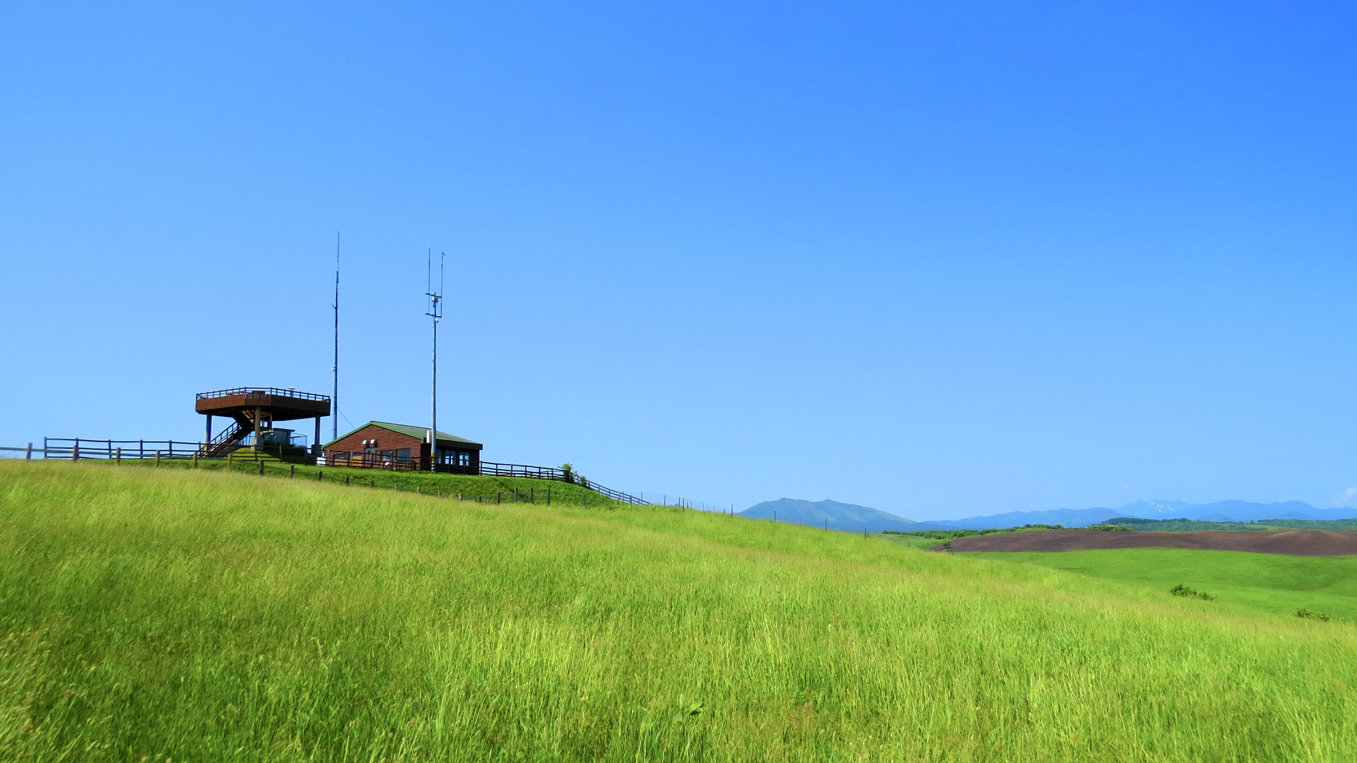 多和平は、1,279haの傾斜放牧地と404haの採草地からなる標茶町の大規模育成牧場で、丘の頂点にある展望台からは360°の大パノラマで地平線を見渡せます。乳牛が牧草を食む北海道らしい牧歌的な風景が広がり、太平洋から昇る朝日や雄阿寒岳の背越しに沈む夕日は神々しい美しさです。